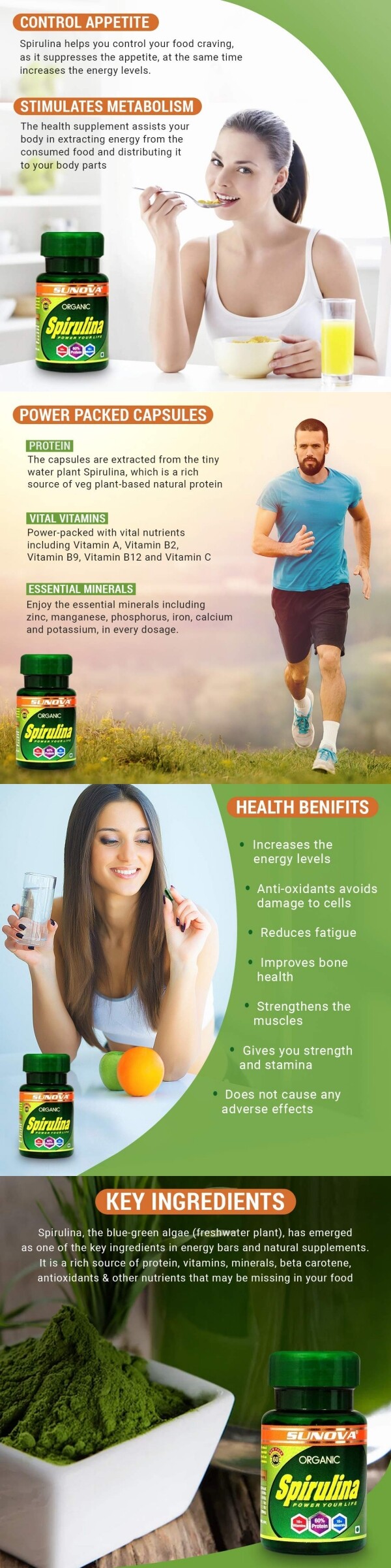 SUNOVA 오가닉 스피루리나 스피룰리나 Spirulina 500mg 60 캡슐