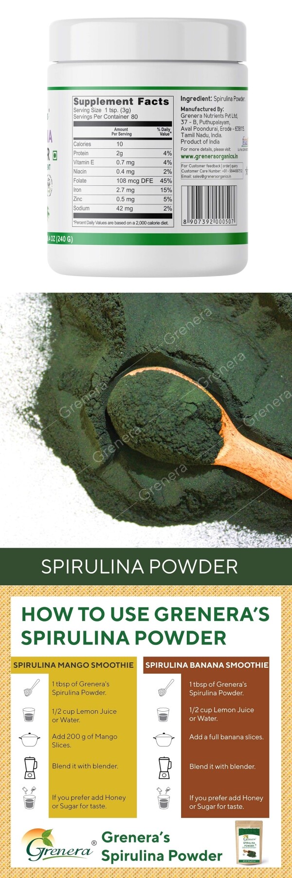 GRENERA 100% 내추럴 스피루리나 스피룰리나 파우더 Spirulina 240g