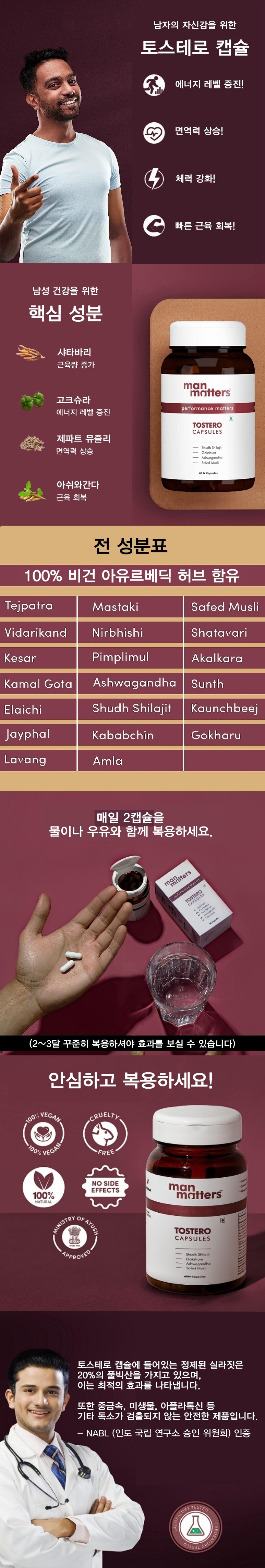 Man Matters 토스테로 남성 근력 정력 영양제 60캡슐 실라지트 실라짓 아쉬와간다 고크슈라