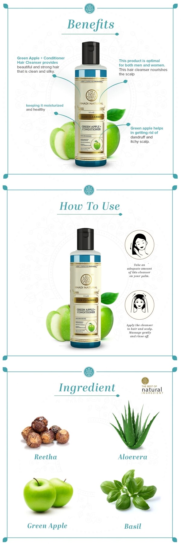 [Khadi Natural Green Apple Conditioner Hair Cleanser 210ml]