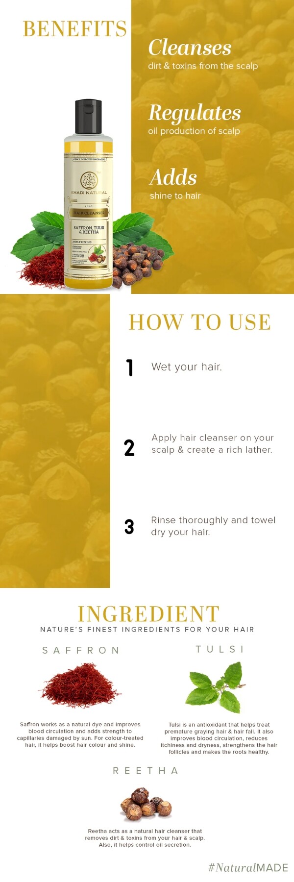 [Khadi Natural Saffron, Tulsi & Reetha Hair Cleanser 210ml]