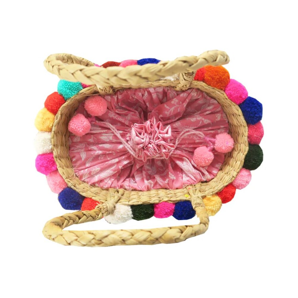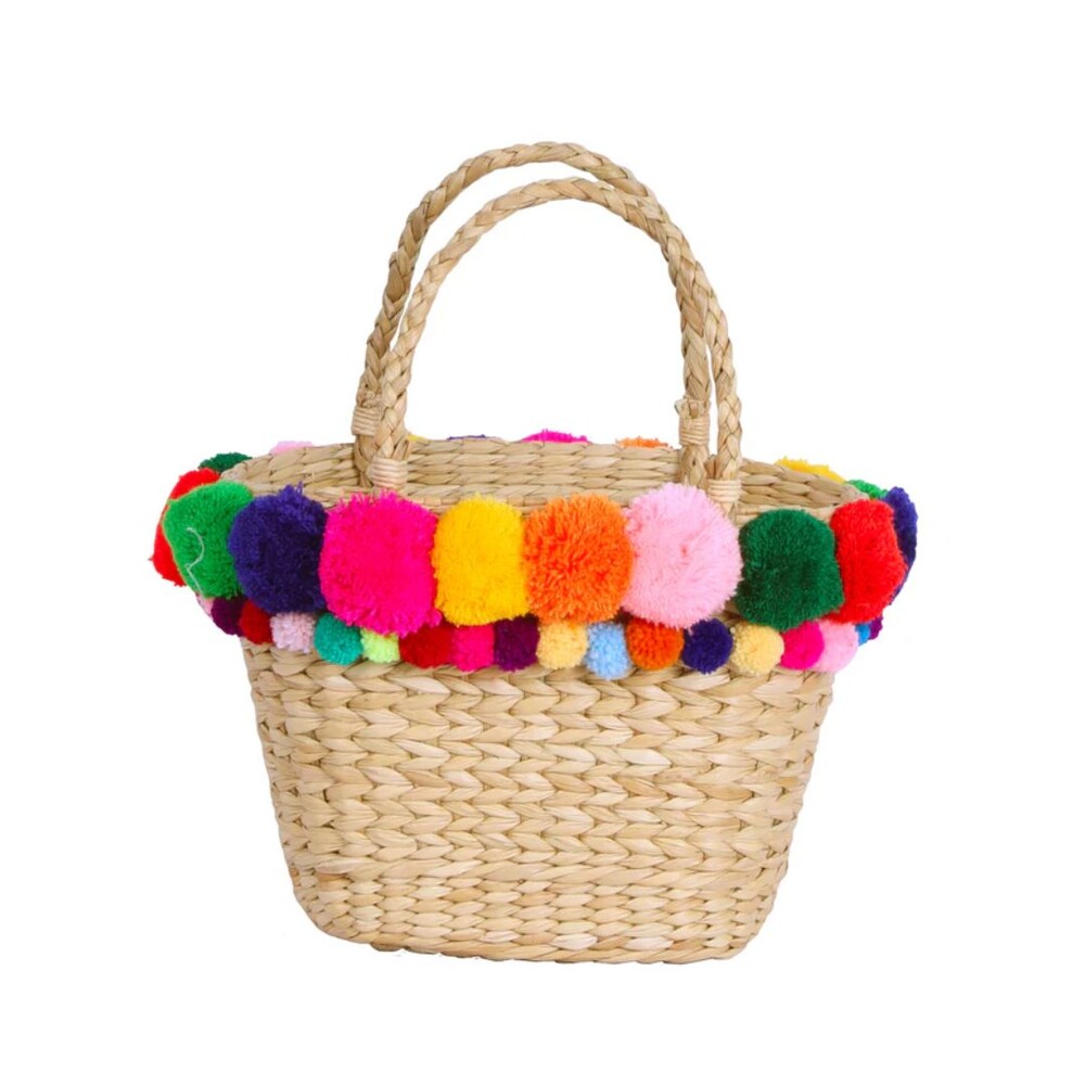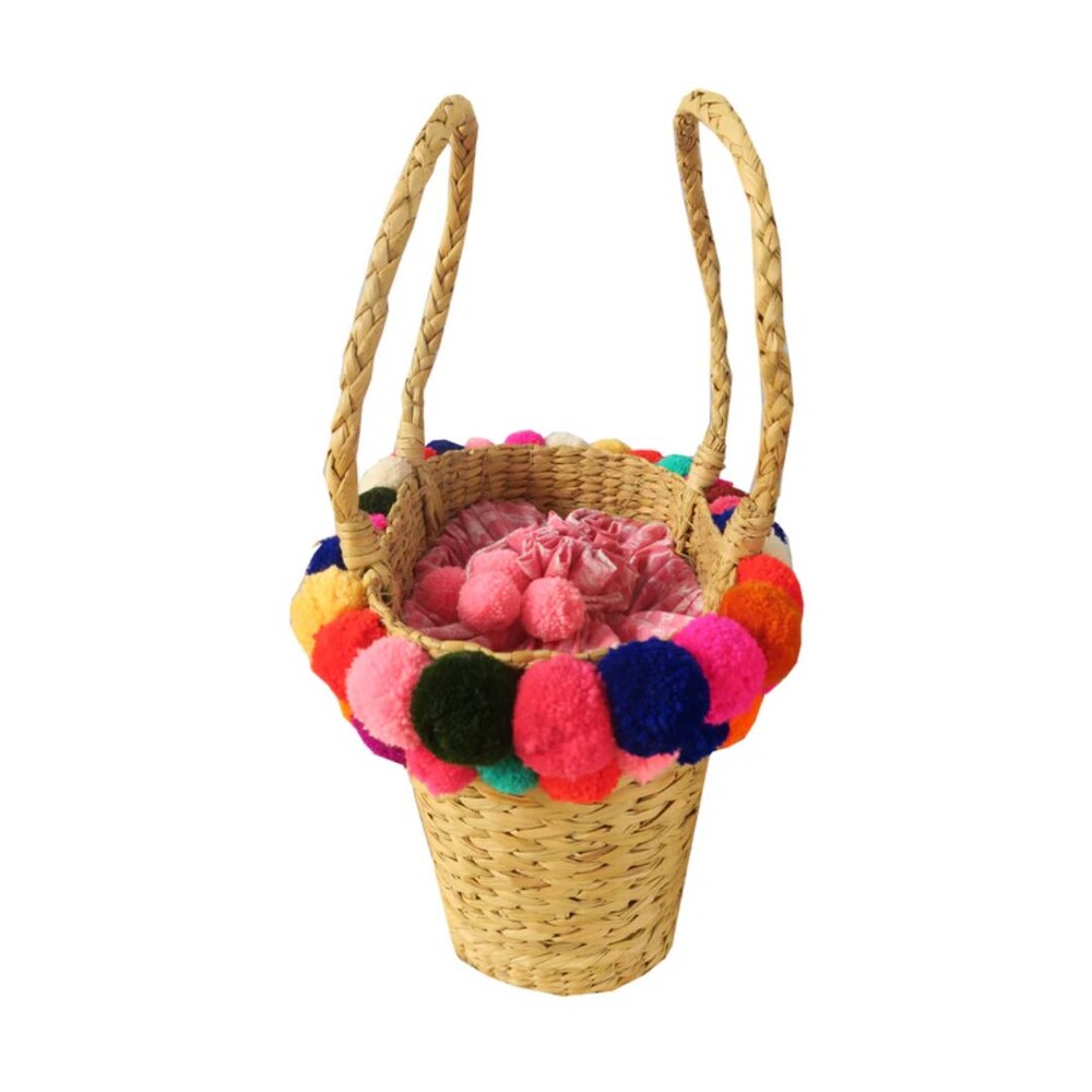 The PDKF Store 폼폼 테슬 라탄 바스켓 백 [The PDKF Store Hand Embellished Basket Bag]