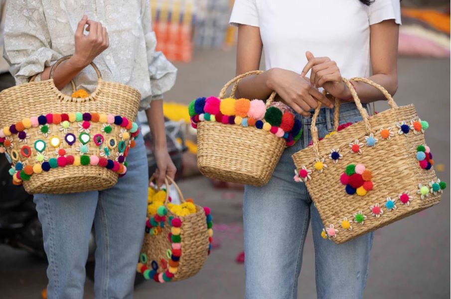 The PDKF Store 폼폼 테슬 라탄 바스켓 백
