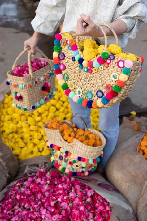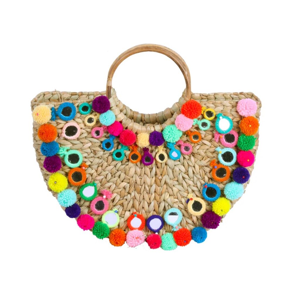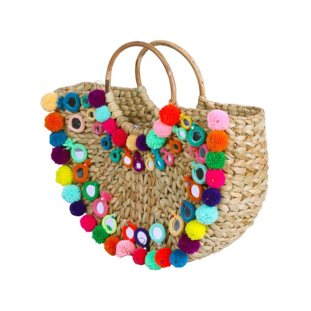 The PDKF Store 폼폼 테슬 라탄 바스켓 백 [The PDKF Store Hand Embellished Basket Bag]
