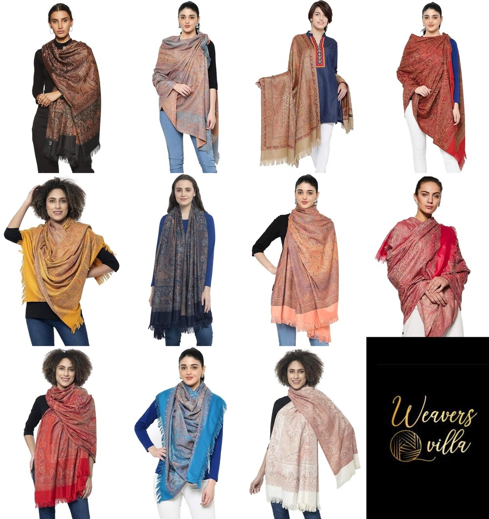 [Weavers Villa - Women's Faux Pashmina Silk Paisley Design Shawls, Stoles]