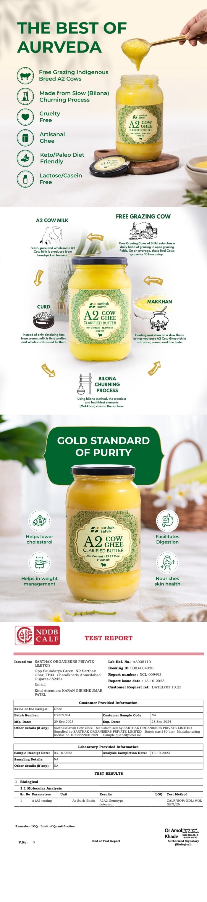 [Sarthak Satvik Desi A2 Free Grazing Cow Ghee 500ml]