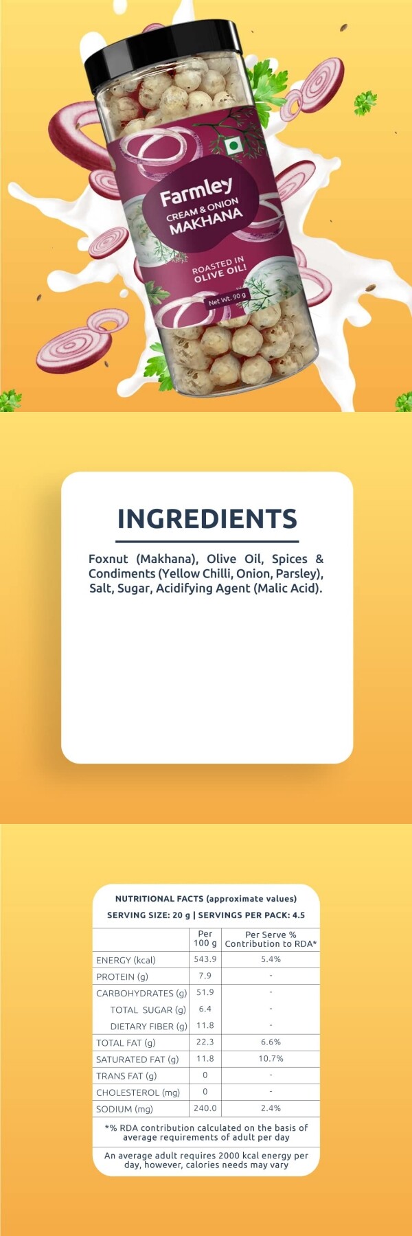 [Farmley Cream & Onion Roasted & Flavored Makhana Jar 180 g (Pack of 2, Each 90 g)]