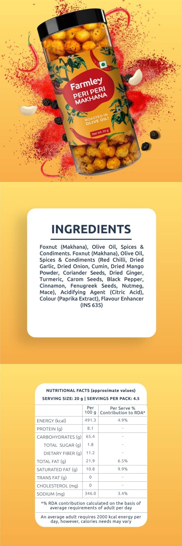 [Farmley Peri Peri Roasted & Flavored Makhana Jar 180 g (Pack of 2, Each 90 g)