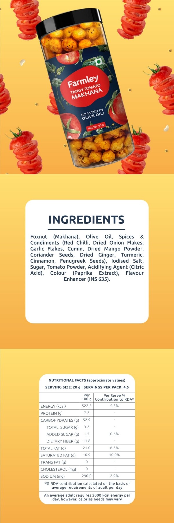 [Farmley Tangy Tomato Roasted & Flavored Makhana Jar 180 g (Pack of 2, Each 90 g)]