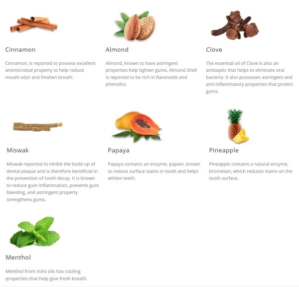 치아 얼룩을 제거하는 파파야 & 파인애플의 허브 성분이 풍부합니다