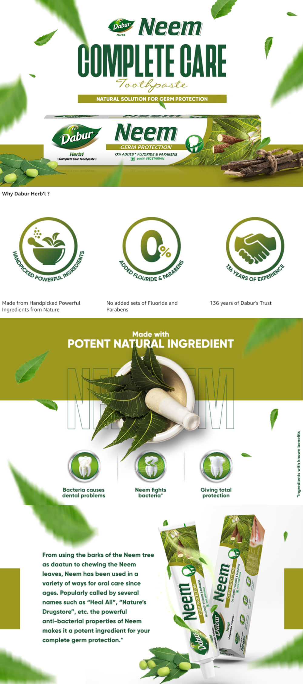 [Dabur Herb'l Neem Germ Protection Cavity Protection Toothpaste (200g)]
