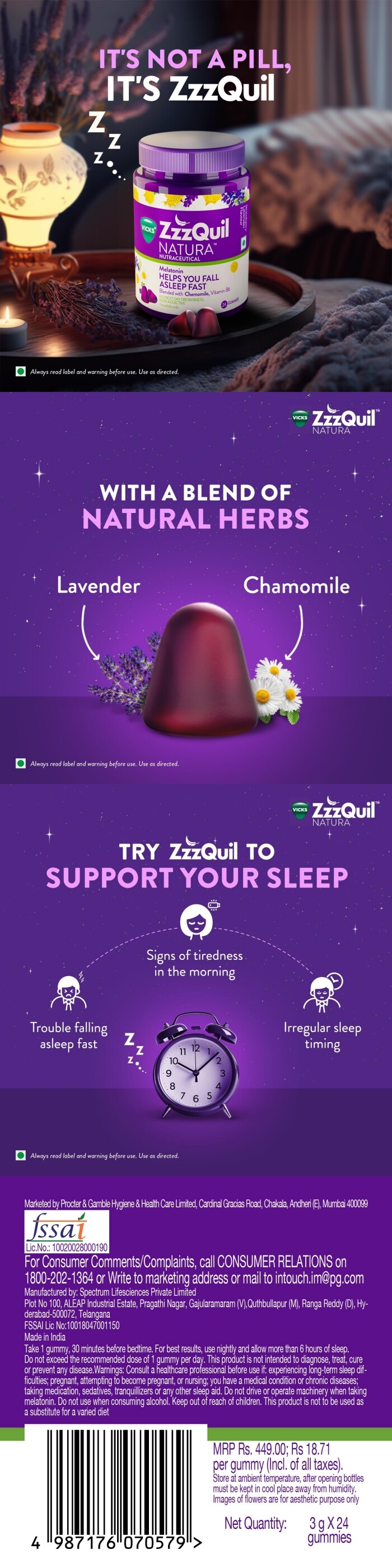 [Vicks ZzzQuil Natura, 24s Pack, Non-Addictive Sleep-Aid Gummy]