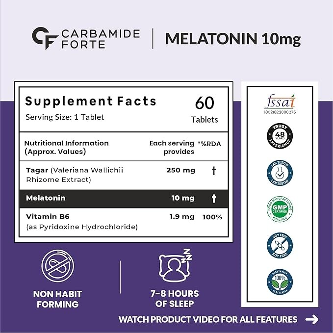 Carbamide Forte Melatonin 10mg Tagar 250mg Sleep Aid 60 Tablets
