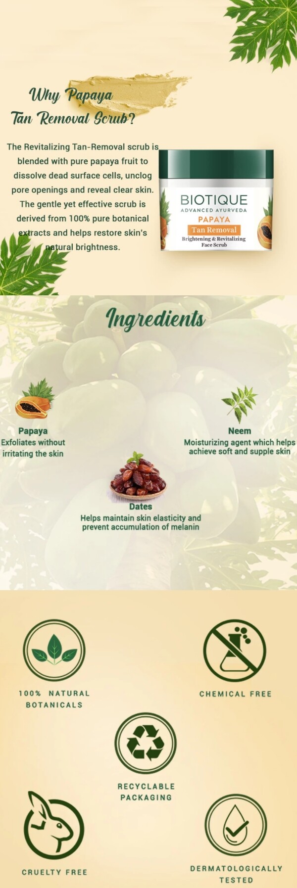 [Biotique Papaya Tan Removal Brightening & Revitalizing Face Scrub 75g]