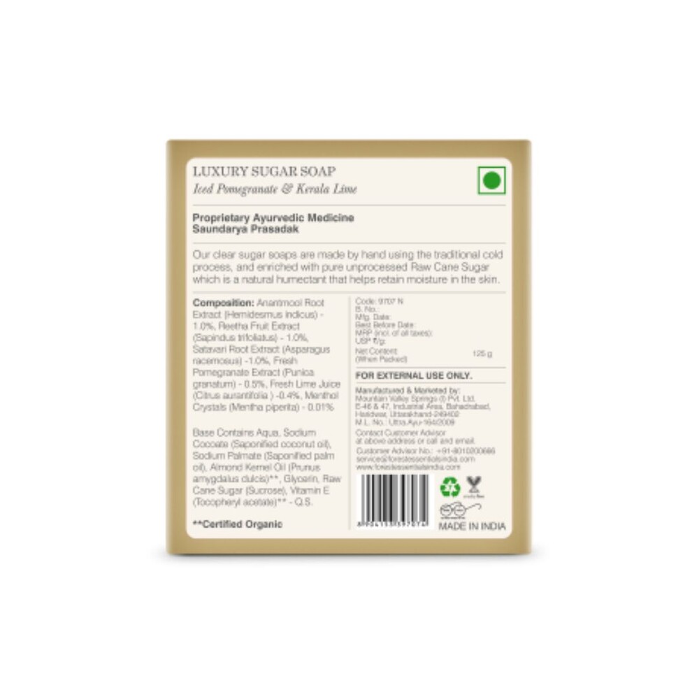 포레스트 에센셜 럭셔리 슈가 비누 파머그래넛 & 카렐라 라임 125g Forest Essentials Luxury Sugar Soap Iced Pomegranate & Kerala Lime