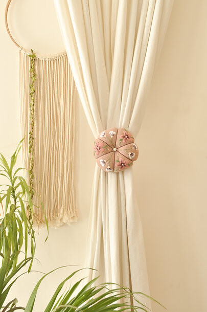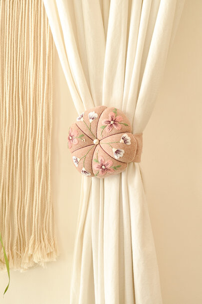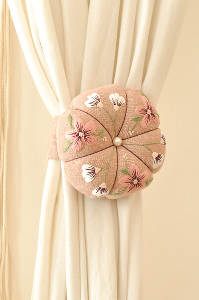 핸드메이드 꽃 자수 핀쿠션 커튼 타이백