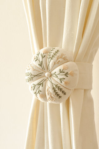 핸드메이드 꽃 자수 핀쿠션 커튼 타이백