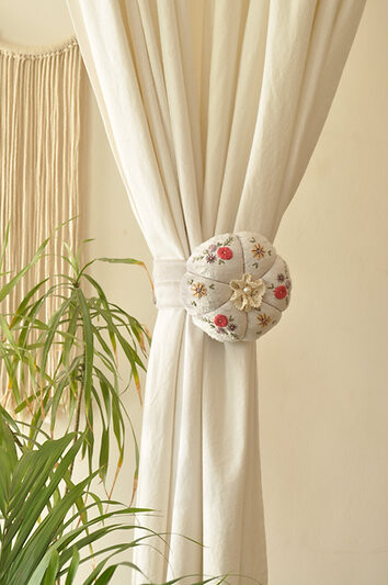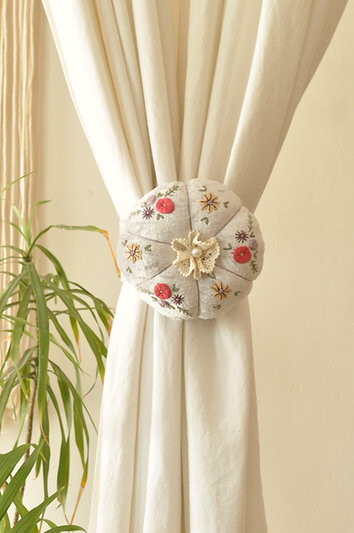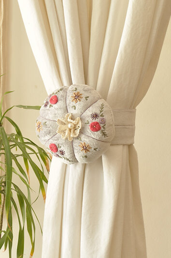 핸드메이드 꽃 자수 핀쿠션 커튼 타이백
