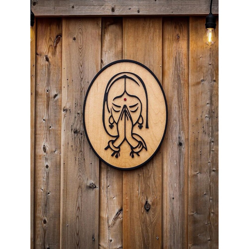 [WELCOME NAMASTE LADY WOODEN HANGING RELIGIOUS WOODEN WALL DECOR]