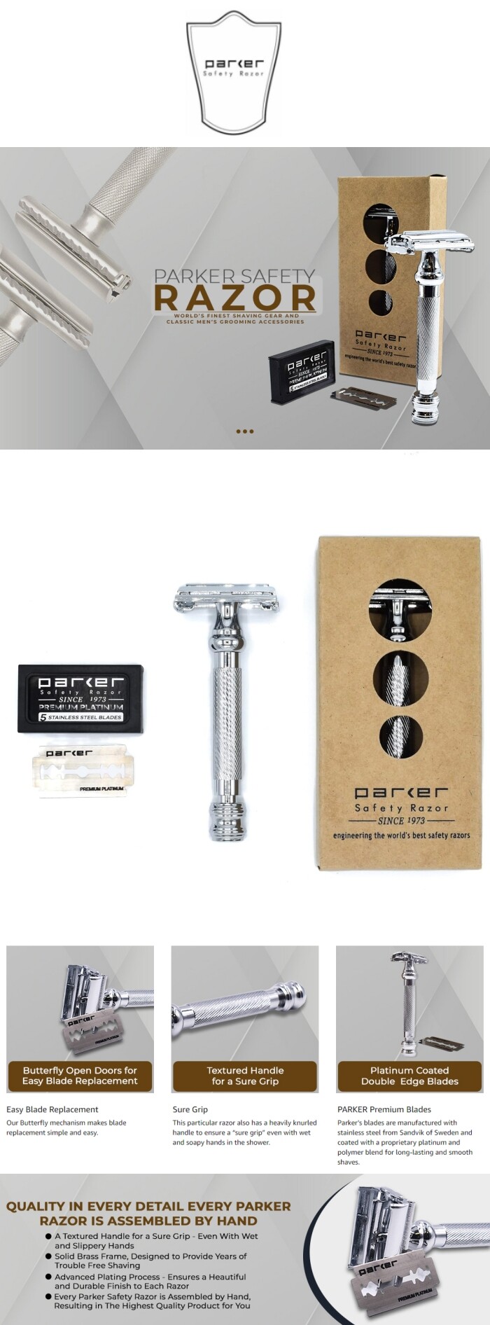 인도 파커 Parker 99R 롱 핸들 헤비 웨이트 양날 면도기 면도날 리필 5개 포함 클래식 면도기 안전면도기
