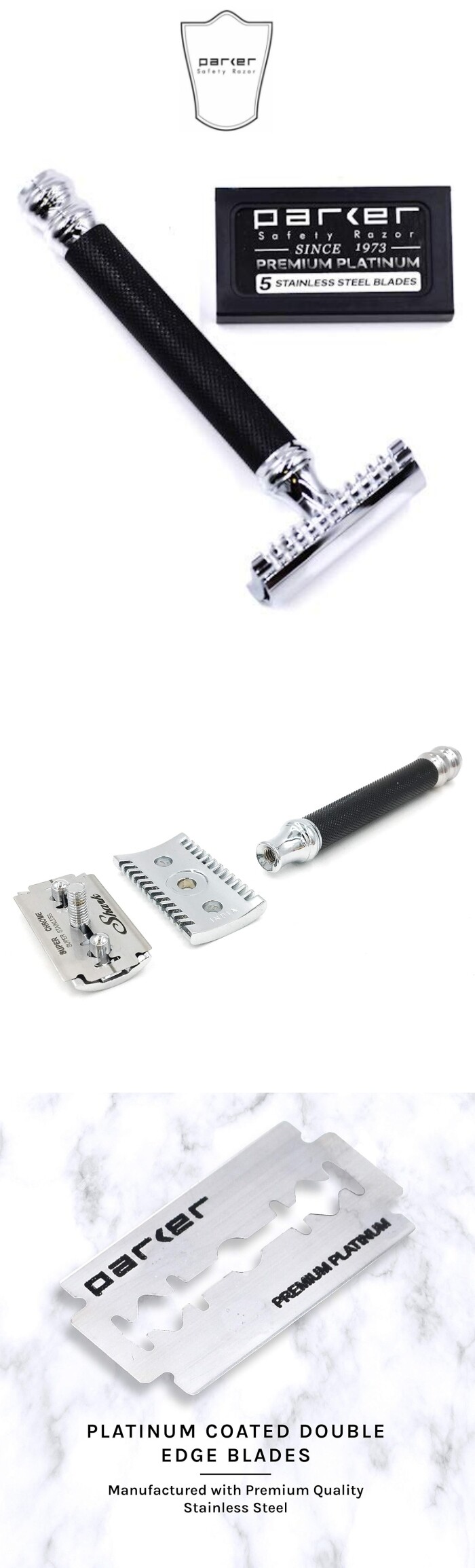 [Parker 26C –Black Handle Three Piece Open Comb Double Edge Safety Razor & 5 Premium Platinum Double Edge Razor Blades]
