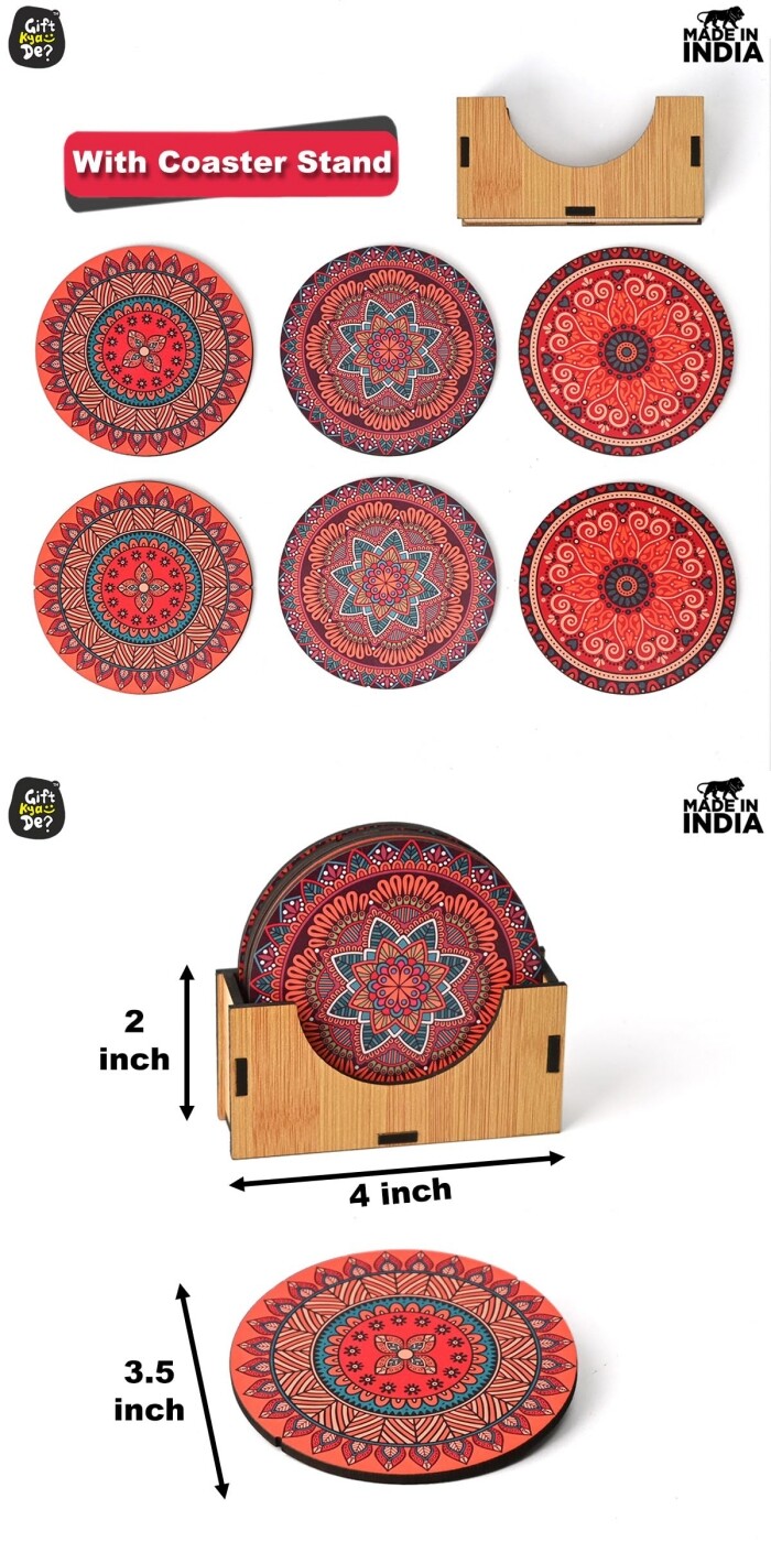 인도 만다라 에스닉 보헤미안 코스터 컵받침 6P세트 (레드)