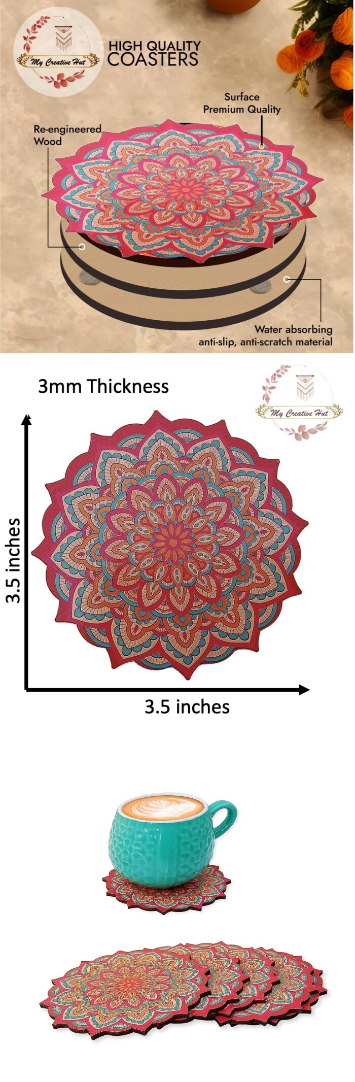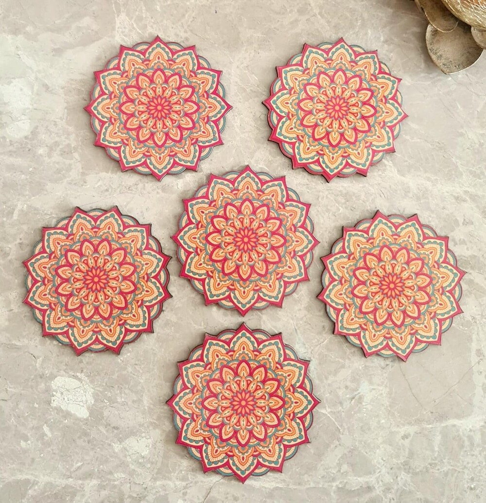 인도 에스닉 보헤미안 꽃 코스터 컵받침 6P세트 (레드)
