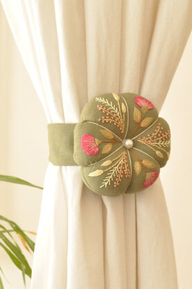 핸드메이드 꽃 자수 핀쿠션 커튼 타이백