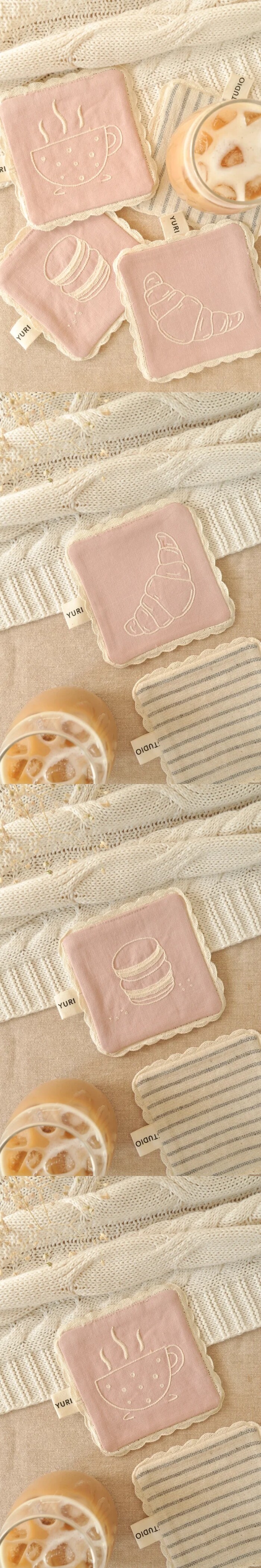 핸드메이드 패브릭 자수 티코스터 컵받침 3세트 (핑크)